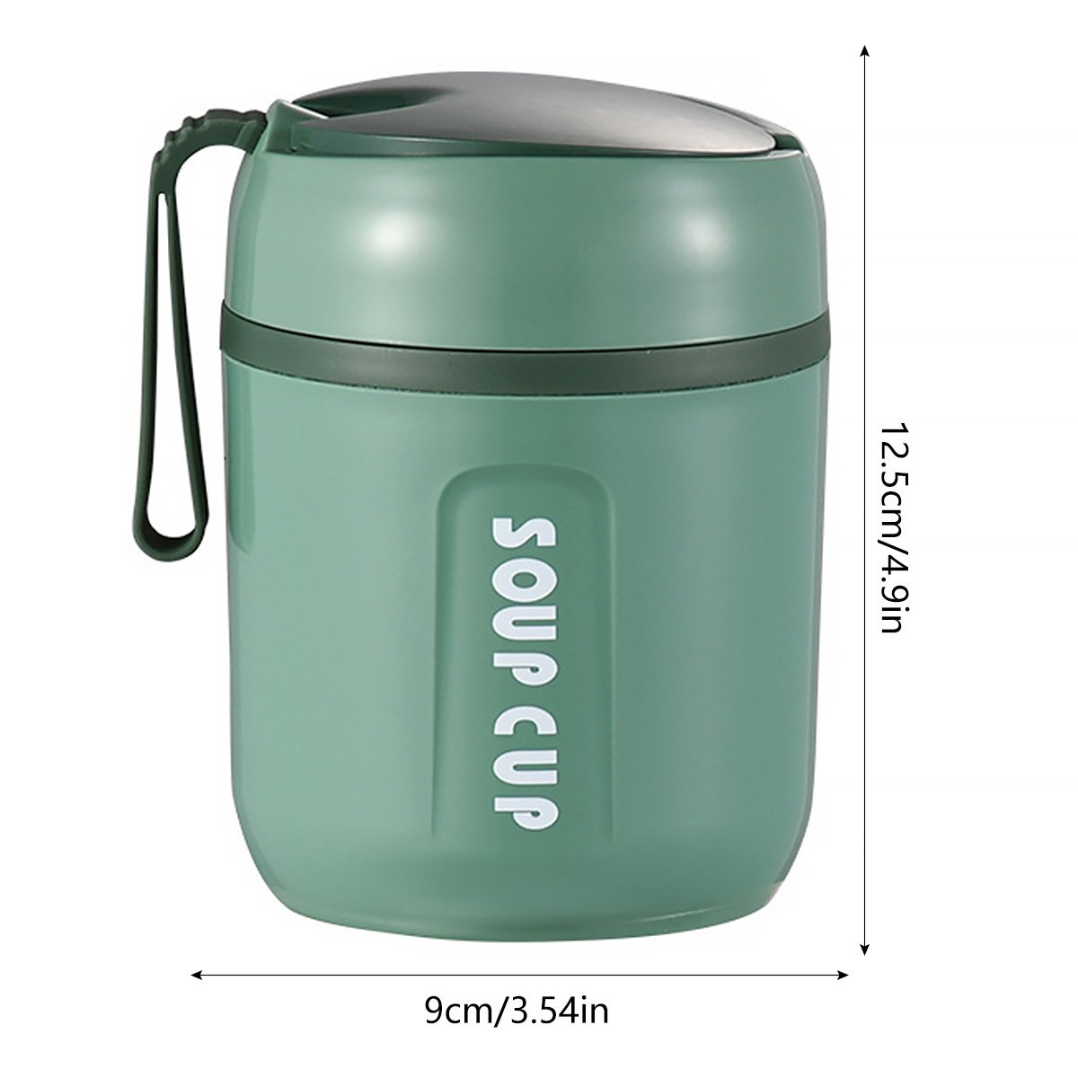 Product Name: Lunch Flask Size: 9*9*12.5cm (3.54*3.54*4.92inch) Shell Material: PP Plastic Liner Material: 304 Stainless Steel Small Soup Spoon Material: PP Plastic Color (optional): Green; Pink Capacity: 480ML Insulation Performance: 6-12 hours Features: 304 stainless steel inner tank; mini portable; heat preservation and cold preservation; easy to clean; food grade PP