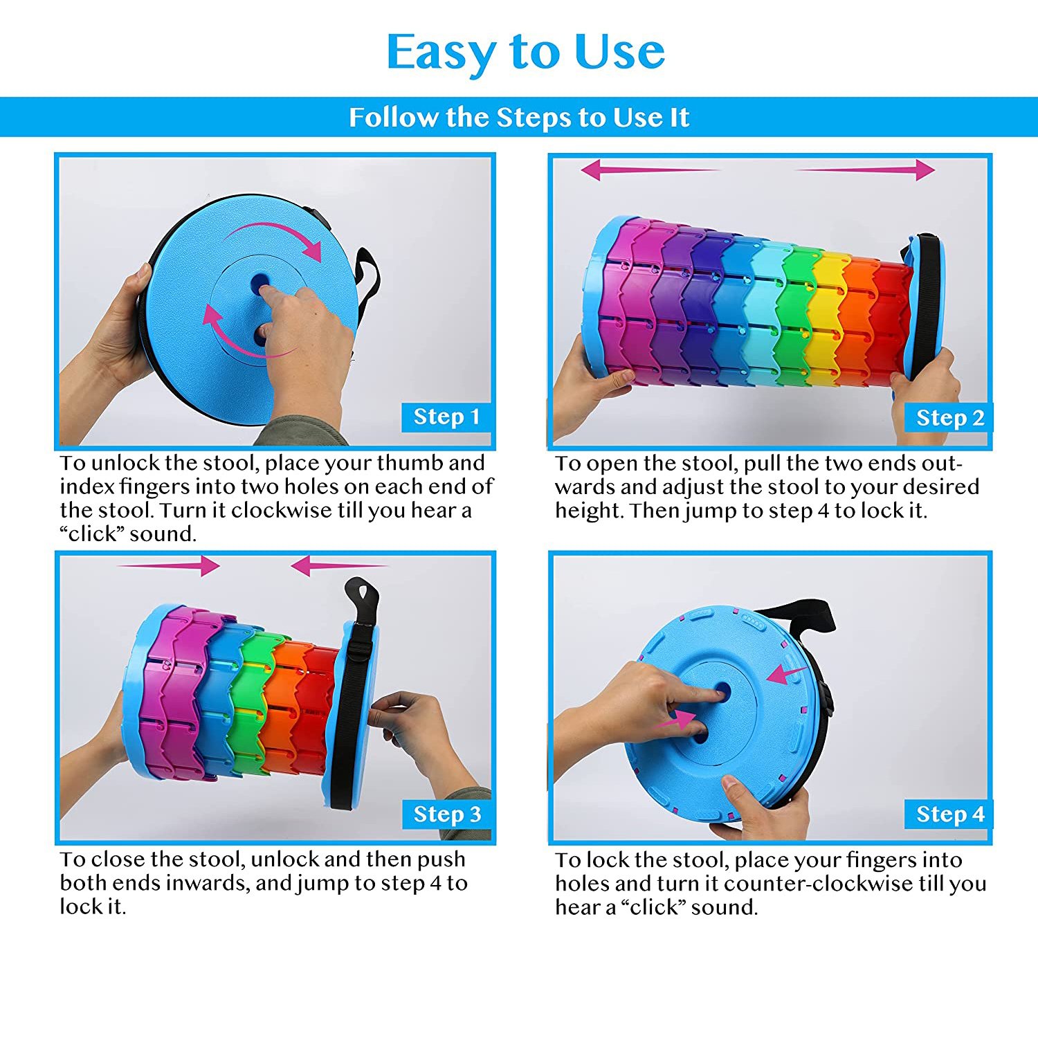 1.High-quality Material: This portable telescopic stool is made of the latest environmentally friendly materials, polymer polypropylene material, which is stronger, more durable, more stable, and lighter!